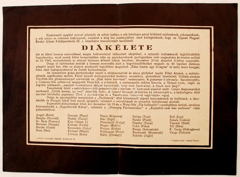 cca 1941-1944 3 db humoros, diák gyászjelentés https://www.darabanth.com/hu/225-Gyorsarveres/225.0/Festmeny-mutargy-papirregiseg-egyeb/Nyomtatvanyok~4/cca-1941-1944-3-db-humoros-diak-gyaszjelentes~II989123