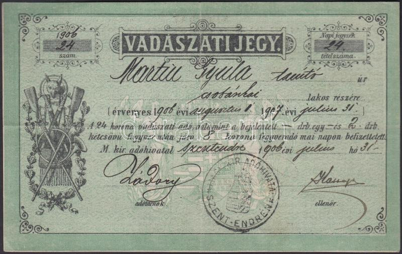1907 Kitöltött vadászati jegy