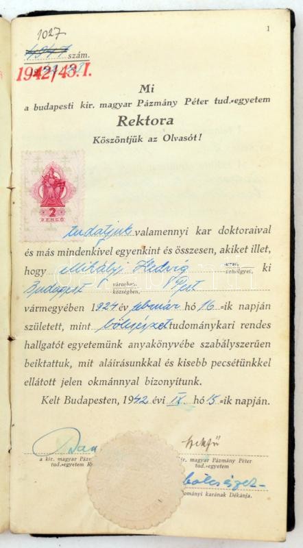 1942 Bölcsészettudományi egyetemi leckekönyv, Domanovszky Sándor, Proh... https://www.darabanth.com/hu/225-Gyorsarveres/225.0/Festmeny-mutargy-papirregiseg-egyeb/Okmanyok~37/1942-Bolcseszettudomanyi-egyetemi-leckekonyv-Domanovszky-Sandor-Prohaszka-Alajos-Szidarovsz~II986617