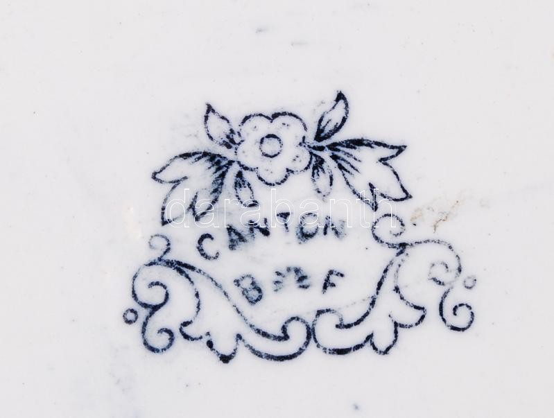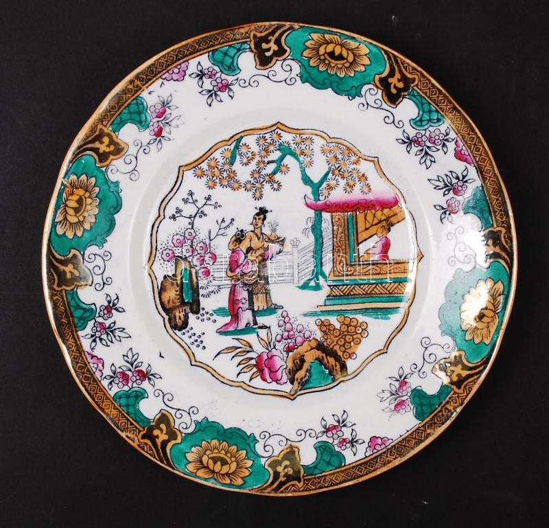 Leírás: Canton süteményes tányér, máz hibával, kézzel festett, jelzett, d:18,5 cm