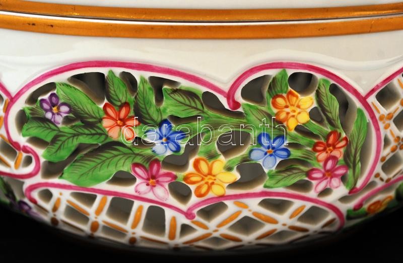 Leírás: Herendi Viktória mintás, gyümölcs kínáló, áttört díszítéses kézzel festett, jelzett, hibátlan, 18x18cm