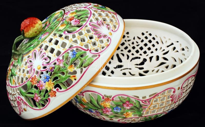 Herendi Viktória mintás, gyümölcs kínáló, áttört díszítéses kézzel fes... https://www.darabanth.com/hu/225-Gyorsarveres/225.0/Festmeny-mutargy-papirregiseg-egyeb/Porcelan~26/Herendi-Viktoria-mintas-gyumolcs-kinalo-attort-disziteses-kezzel-festett-jelzett-hi~II989462