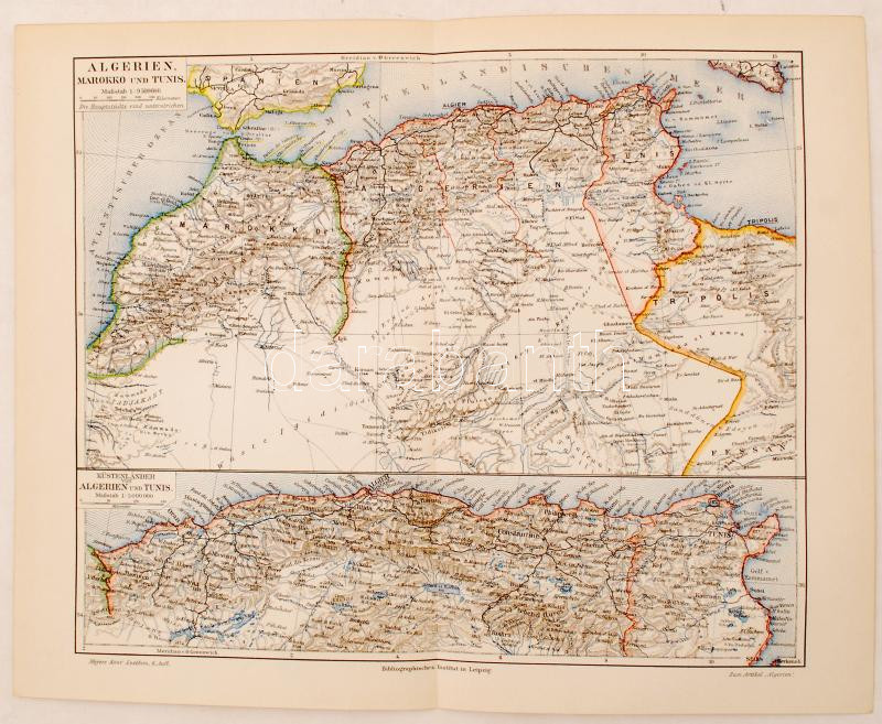 Leírás: cca 1902-1909 2 db Egyiptom és Algéria térképe a Meyers-féle lexikonból, 24x30 cm /