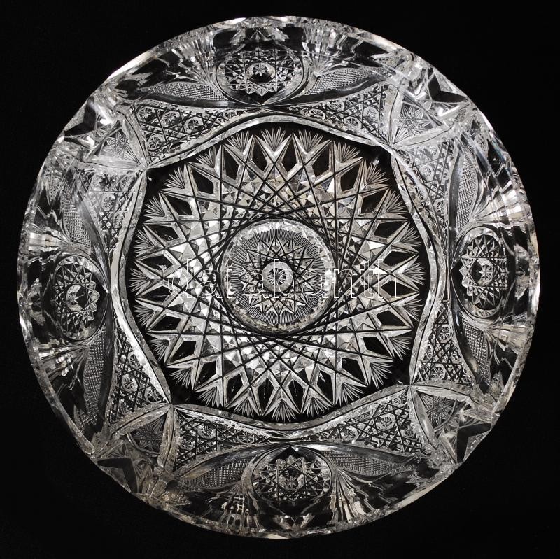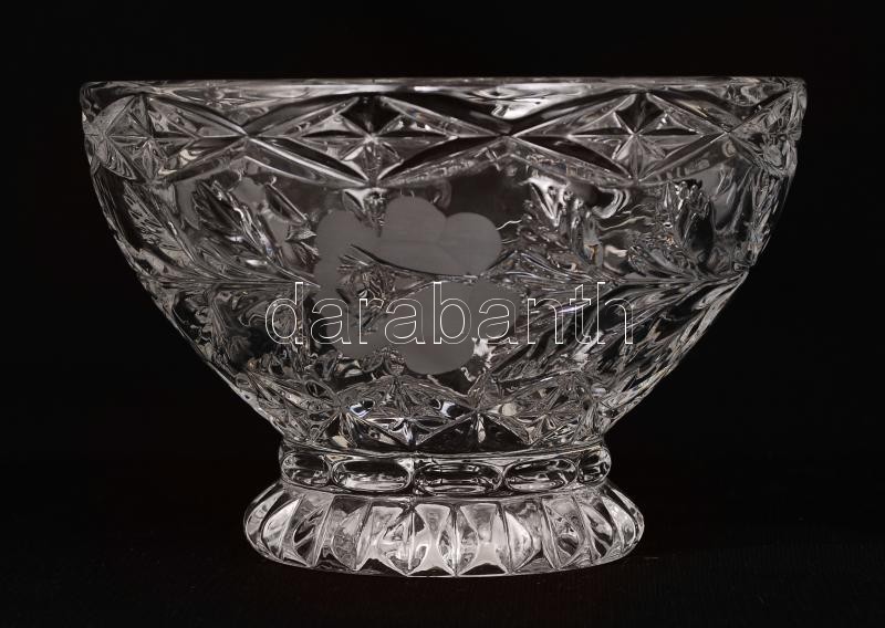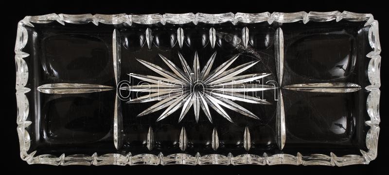 Nagy üvegtétel: Ólomkristály bonbonier tetővel, 3db váza (2 nagyobb és egy kisebb méretű), harang, cukortartó tetővel, kínálótál, 3db hamutál, bonbonier, 2db tálka, összesen: 13 db