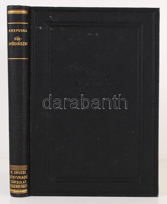 Leírás: Dr.Krepuska Géza-Dr.Krepuska István: Fülgyógyászat. 219 szövegközti ábra, 3 színes tábla. Bp., 1936, Magyar Orvosi Könyvkiadó Társulat. Kiadói aranyozott gerincű egészvászon kötés, kissé kopottas állapotban.