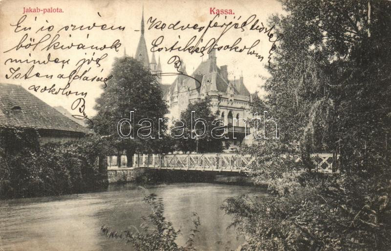 Kassa, Jakab palota, híd, kiadja Divald Károly / palace, bridge (EK) https://www.darabanth.com/hu/225-Gyorsarveres/225.0/Kepeslapok/Felvidek~300012/Kassa-Jakab-palota-hid-kiadja-Divald-Karoly-palace-bridge-EK~II962215