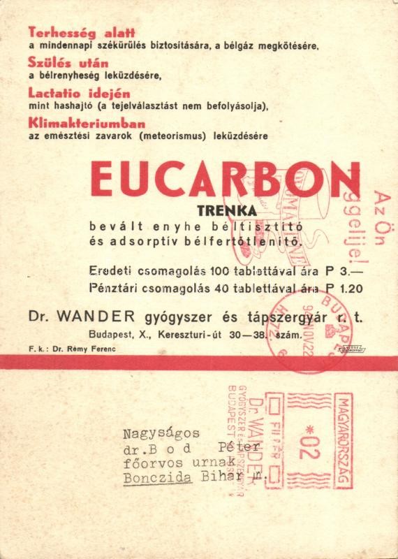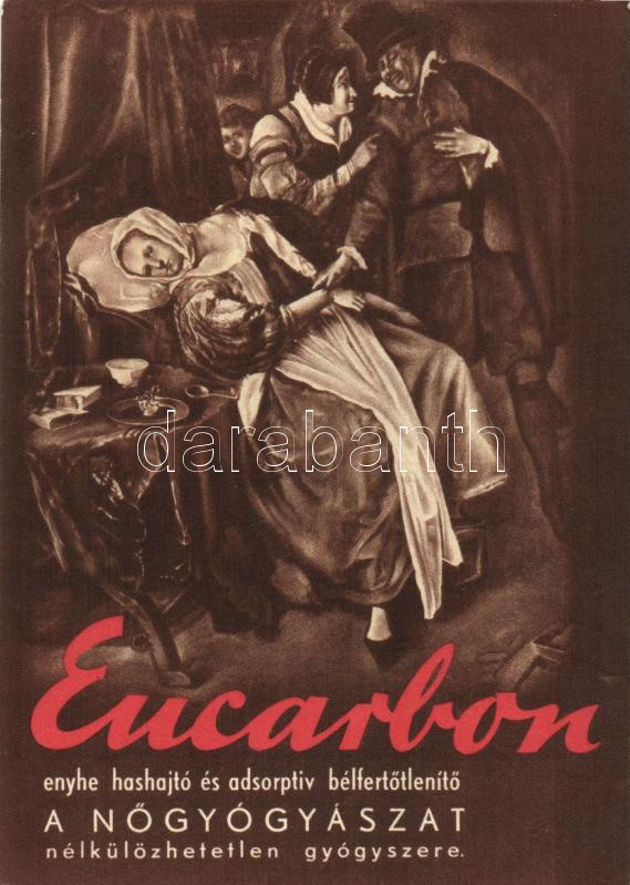 Leírás: Eucarbon, enyhe hashajtó és adsorptiv bélfertőtlenítő a nőgyógyászat nélkülözhetetlen gyógyszere, reklám / medicine advertisement (12 x 17 cm) (EB)