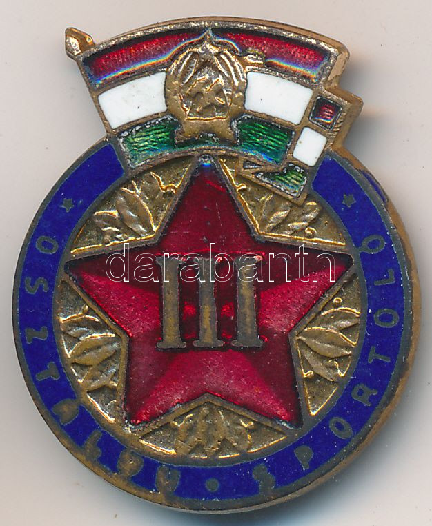 ~1950. "III. Osztályú Sportoló" zománcozott fém kitüntető je... https://www.darabanth.com/hu/225-Gyorsarveres/225.0/Numizmatika/Falerisztika-Kituntetesek-jelvenyek~62/7E1950-III-Osztalyu-Sportolo-zomancozott-fem-kitunteto-jelveny-T2~II986021