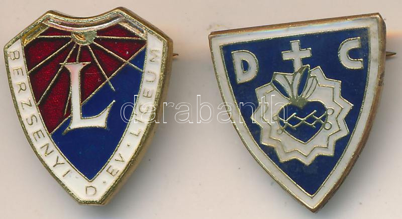 Leírás: DN "Berzsenyi Dániel Evangélikus Líceum" zománcozott fém jelvény + "DC" zománcozott fém jelvény T:2