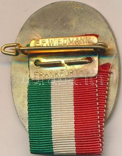 German Third Reich 1938. "Internationale Handwerks Ausstellung Berlin 1938." enamelled metal badge with "E.F. Wiedmann - Frankfurt" mark on its back C:XF