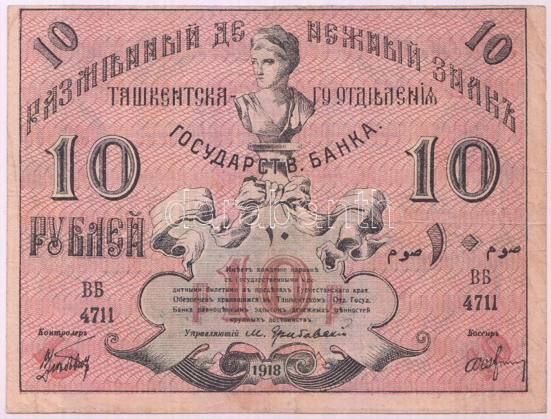 Russia / ... https://www.darabanth.com/hu/225-Gyorsarveres/225.0/Numizmatika/Kulfoldi-bankjegyek~57/Oroszorszag-Orosz-Kozep-Azsia-Turkesztan-1918-10R-TIII-3Cbr3ERussia-Russian-Central-Asia~II991555