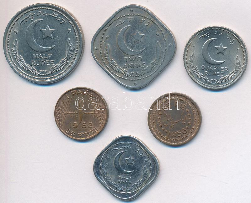 Pakisztán 1948. 1/2A + 1949. 2A + 1/4R + 1951. 1/2R + 1956. 1p + 1962.... https://www.darabanth.com/hu/225-Gyorsarveres/225.0/Numizmatika/Kulfoldi-fem-es-ezustpenzek~58/Pakisztan-1948-12A-plus-1949-2A-plus-14R-plus-1951-12R-plus-1956-1p-plus-1962-1p-T2-3Cbr3EPakistan-1948-1~II987601