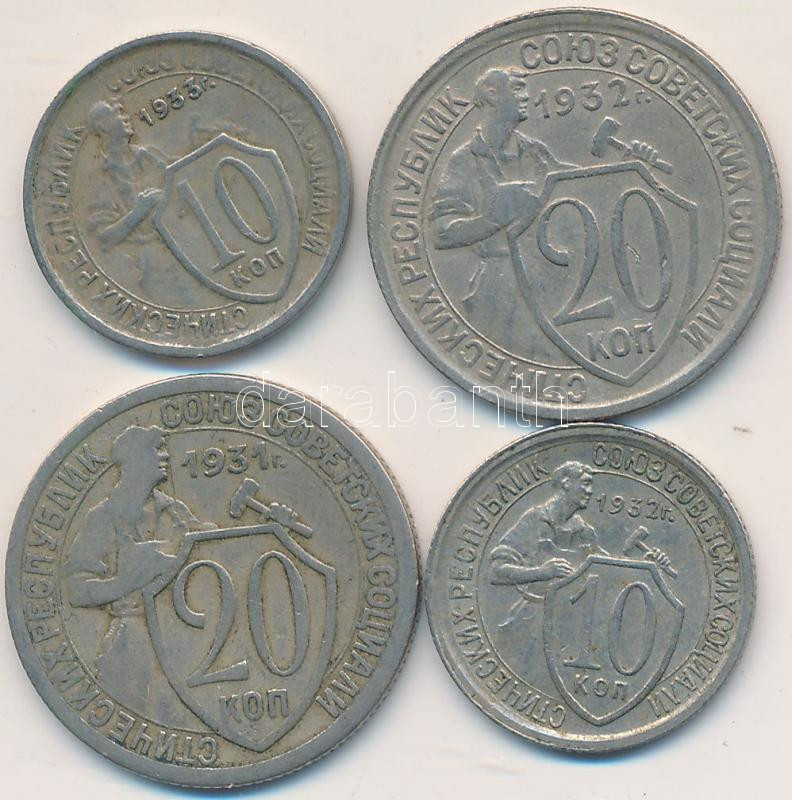Soviet Union 1931-1933. 10 Kopek (2x) + 20 Kopeks (2x) C:XF,VF,F