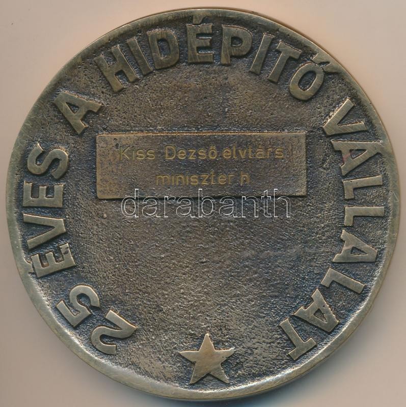 1974. "25 éves a Hídépítő Vállalat" Br plakett (95mm) T:2 https://www.darabanth.com/hu/225-Gyorsarveres/225.0/Numizmatika/Magyar-emlekveretek~55/1974-25-eves-a-Hidepito-Vallalat-Br-plakett-95mm-T2~II989629