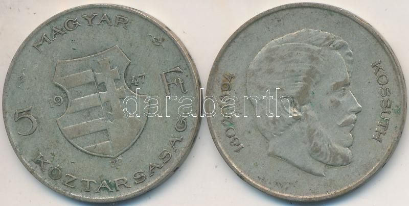 Leírás: 1947. 5Ft Ag "Kossuth" (2x) T:2-,3