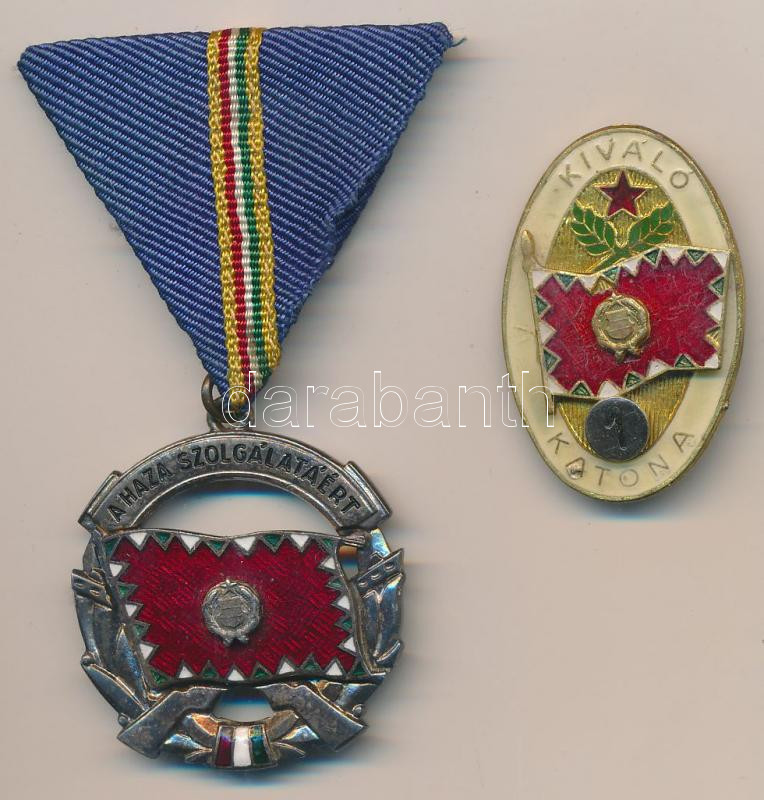 1960. "A Haza Szolgálatáért Érdemérem" ezüst fokozata mellszalagon eredeti dísztokban igazolvánnyal + "Kiváló Katona" első osztályú zománcozott fém jelvény T:1,2