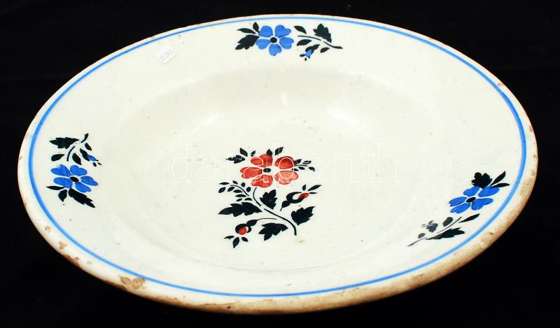 Leírás: Apátfalva népi mintás kerámia tál, jelzett, lepattanásokkal, d: 23 cm