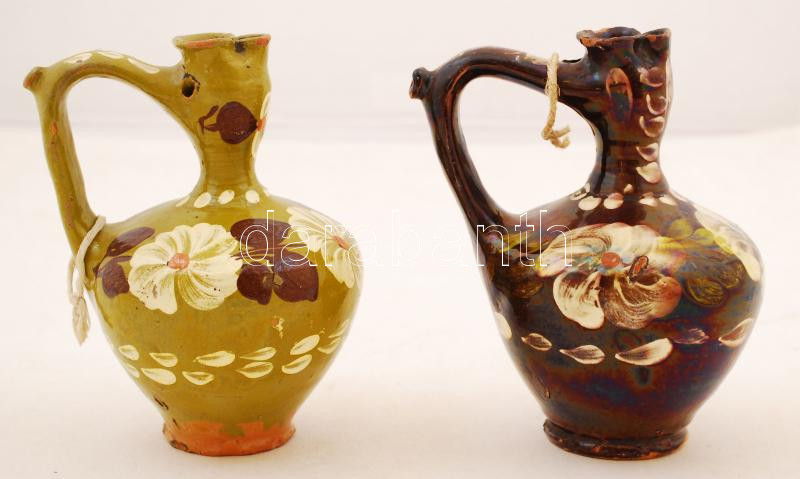 Leírás: cca 1940 Mezőtúri korsó pár, kisebb lepattanásokkal, kézzel festett, m:17 cm (2×)