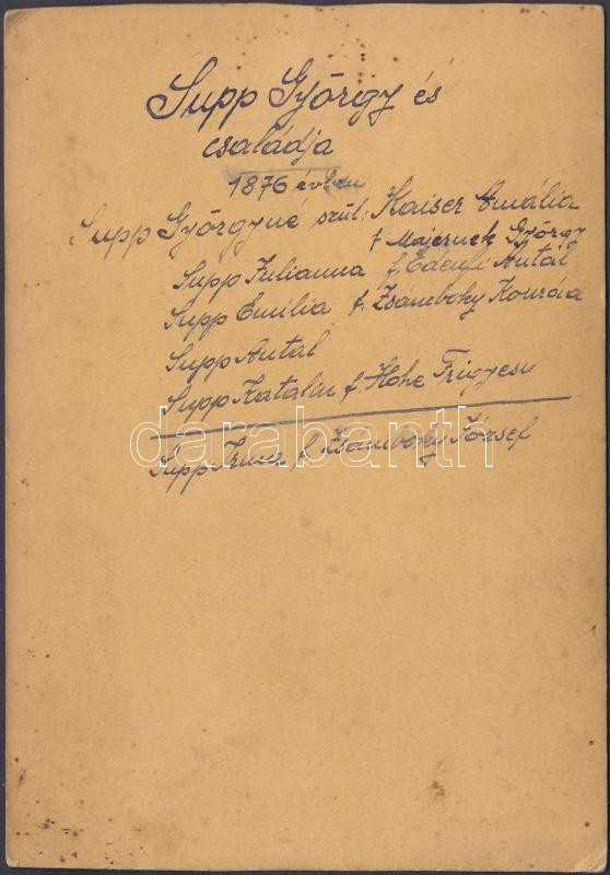 cca 1900-1918 Három katona fotója csernovici műteremből, 9,5×6 cm + cca 1876 Családi kabinetfotó, Goldstein & Szerdahelyi fotóműhelyéből, hátulján feliratozva, 13,5×10 cm