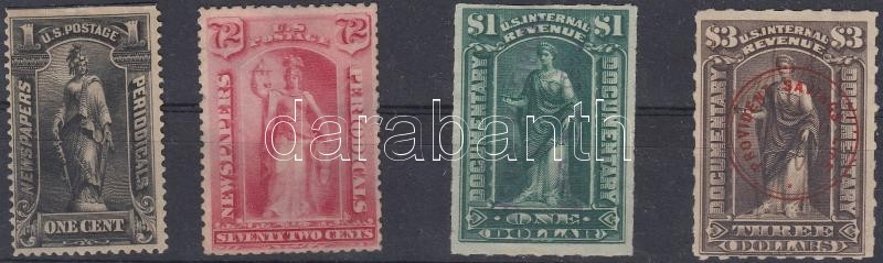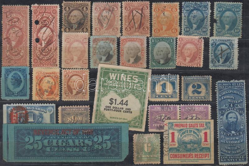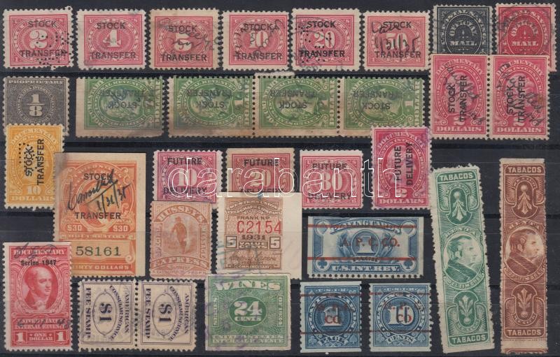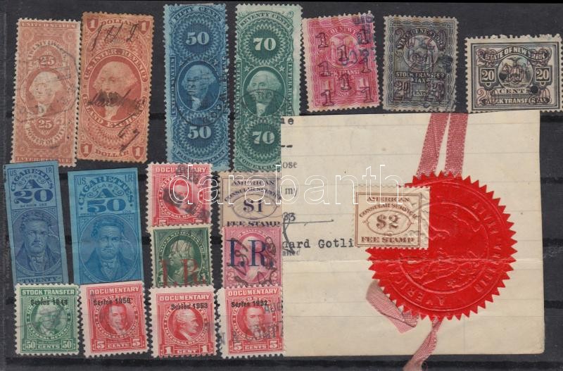 Leírás: 109 db régi USA okmánybélyeg sok jobbal 5 berakólapon