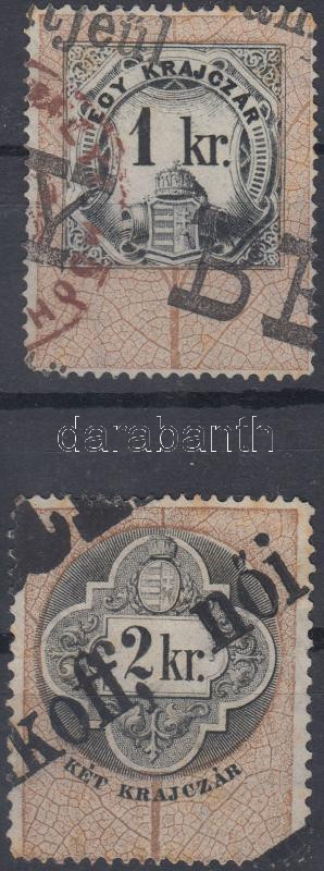 Leírás: 1880 Okmánybélyeg hírdetvényen 1kr, 2kr