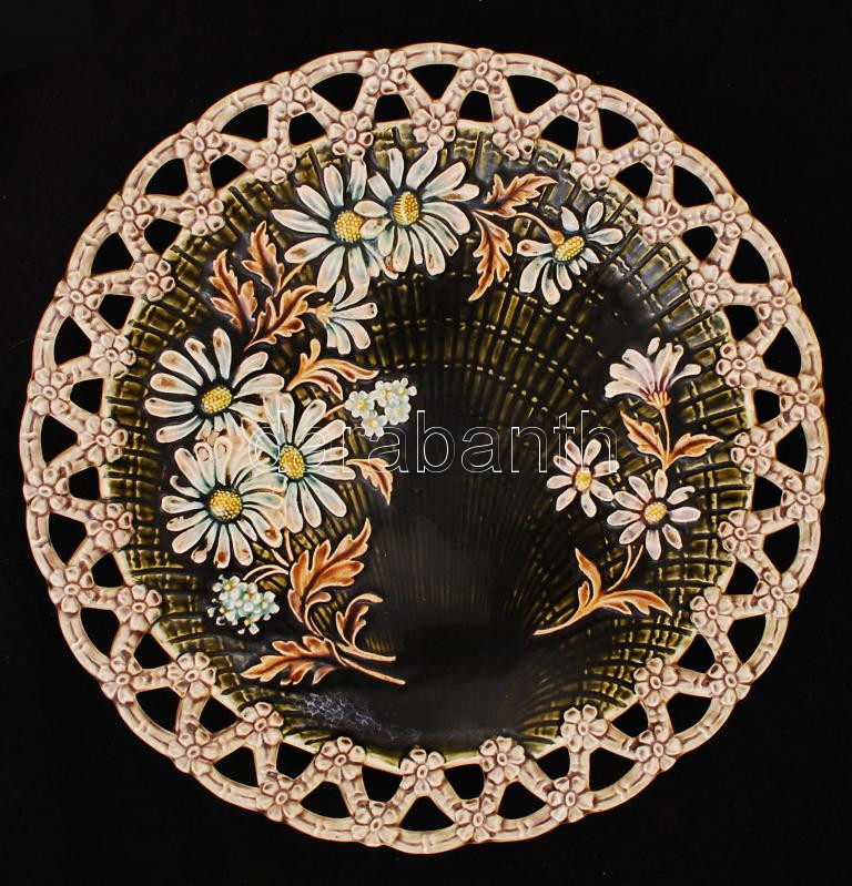 Leírás: Josef Steidl Znaim fajansz dísztányér, kézzel festett, jelzett, máz hibákkal, d: 31 cm.