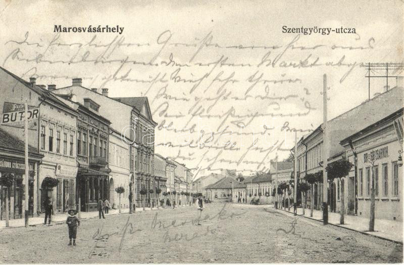 Marosvásárhely, Szentgyörgy utca, Bor és sörcsarnok, gyógyszertár, bút... https://www.darabanth.com/hu/226-Gyorsarveres/226.0/Kepeslapok/Erdely~50006/Marosvasarhely-Szentgyorgy-utca-Bor-es-sorcsarnok-gyogyszertar-butorraktar-street-wi~II1001781