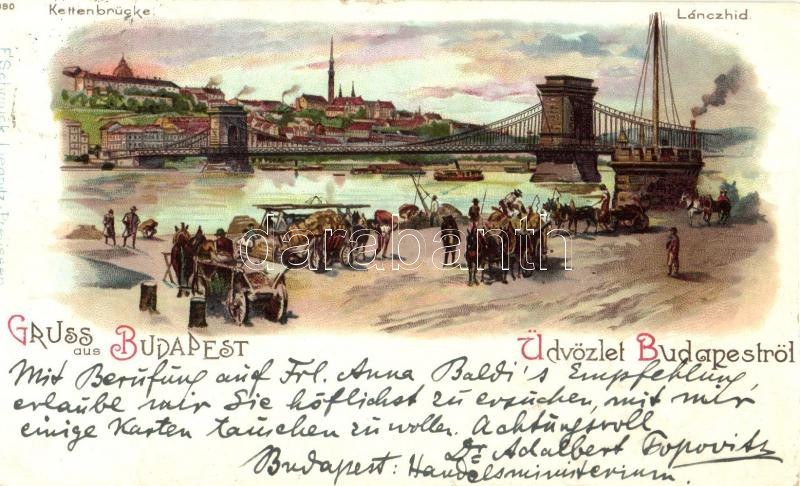 Leírás: 1899 Budapest, Lánchíd, litho (levágott / cut)