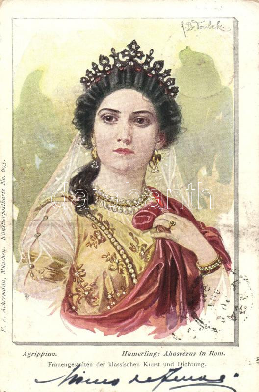 1899 Hamerling's Ahasverus in Rom; Agrippina, F. A. Ackermann Kün... https://www.darabanth.com/hu/226-Gyorsarveres/226.0/Kepeslapok/Muvesz~400135/1899-Hamerlings-Ahasverus-in-Rom-Agrippina-F-A-Ackermann-Kunstlerpostkarte-No-695-s-F-B-D~II1000583
