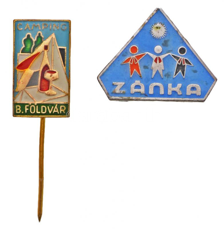 Leírás: DN "Camping Balatonföldvár" zománcozott fém kitűző + "Zánka" zománcozott fém jelvény T:2,2-