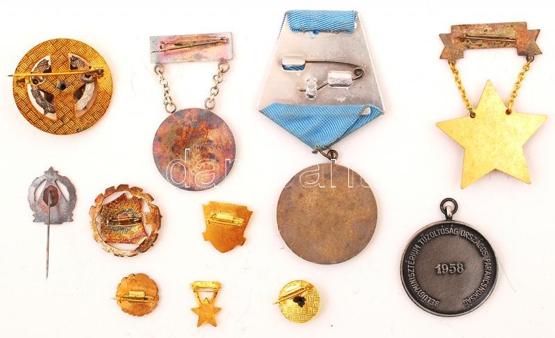 Leírás: Kis doboznyi vegyes jelvény és kitűző, közte "Magyar Kábel Művek Törzsgárda", "A Kisipari Szövetkezet Kiváló Dolgozója", egy részük tokban T:vegyes