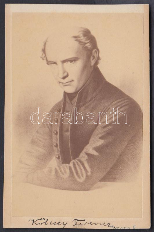 cca 1860 Kölcsey Ferenc (1790-1838) költő, politikus, nyelvújító, az MTA tagja portréját Veress Ferenc (1832-1916) vizitkártyán sokszorosítva árusította, 9,5x6 cm