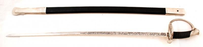 Ornated honorary sword with "United States Marine" inscription on balde, in its own scabbard, in a good condition, blade length: 71,5 cm, full length: 84,5 cm