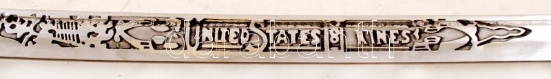 Gazdagon díszített díszkard, a pengén "United States Marines" felirattal, saját hüvelyében, szép állapotban, pengehossz: 71,5 cm, teljes hossz: 84,5 cm /