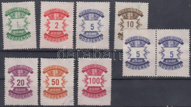 1946 Okmánybélyeg sor 1-100 AP https://www.darabanth.com/hu/227-Gyorsarveres/227.0/Festmeny-mutargy-papirregiseg-egyeb/Okmanybelyegek~200339/1946-Okmanybelyeg-sor-1-100-AP~II1012392