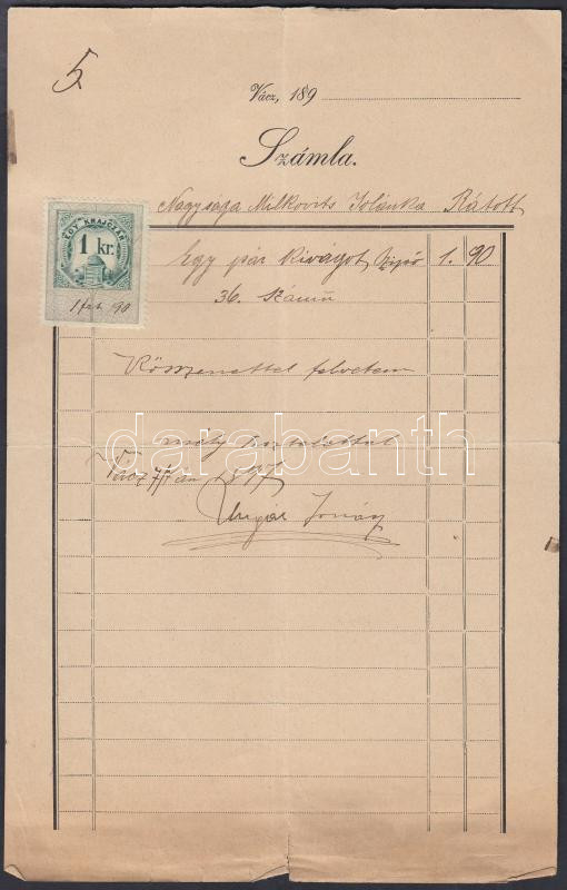 Leírás: 1915 Számla 1kr okmánybélyeggel