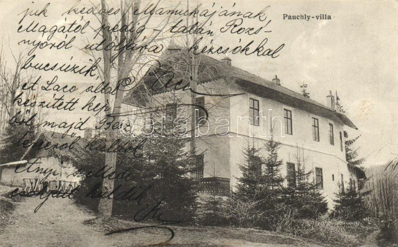 Rozsnyó, Pauchly-villa; Fuchs József kiadása https://www.darabanth.com/hu/227-Gyorsarveres/227.0/Kepeslapok/Felvidek~400008/Rozsnyo-Pauchly-villa-Fuchs-Jozsef-kiadasa~II1006313