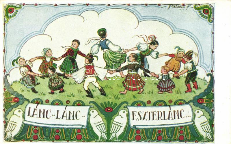 Lánc-lánc-eszterlánc... / Hungarian folklore s: vitéz Pataky Ferenc https://www.darabanth.com/hu/227-Gyorsarveres/227.0/Kepeslapok/Folklor~600050/Lanc-lanc-eszterlanc-Hungarian-folklore-s-vitez-Pataky-Ferenc~II1008754