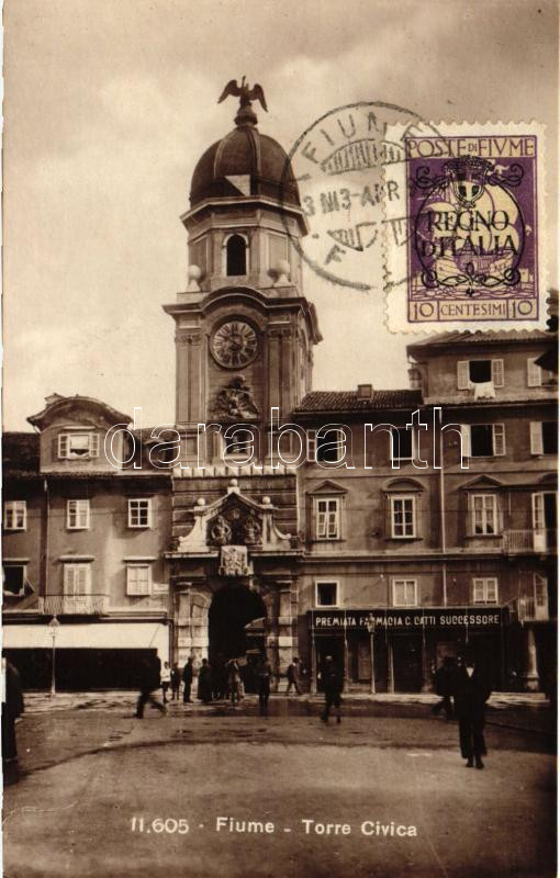 Fiume, Torre Civica / civic Tower, pharmacy https://www.darabanth.com/hu/227-Gyorsarveres/227.0/Kepeslapok/Horvatorszag-Delvidek~400010/Fiume-Torre-Civica-civic-Tower-pharmacy~II1005694