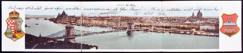 Leírás: 1899 Budapest, Pest, címer, panoramacard, litho (b)