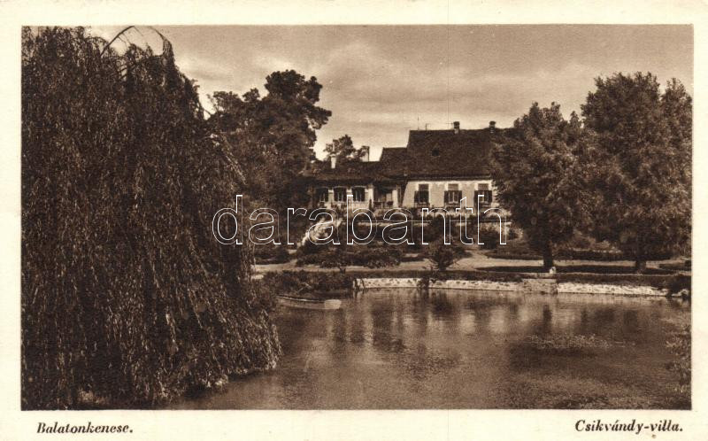 Balatonkenese, Csikvándy villa https://www.darabanth.com/hu/227-Gyorsarveres/227.0/Kepeslapok/Magyarorszag~400006/Balatonkenese-Csikvandy-villa~II1009015
