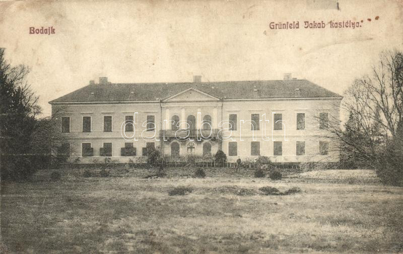 Bodajk, Grünfeld Jakab kastélya, Robitsek Sándor kiadása (r) https://www.darabanth.com/hu/227-Gyorsarveres/227.0/Kepeslapok/Magyarorszag~400006/Bodajk-Grunfeld-Jakab-kastelya-Robitsek-Sandor-kiadasa-r~II1008984