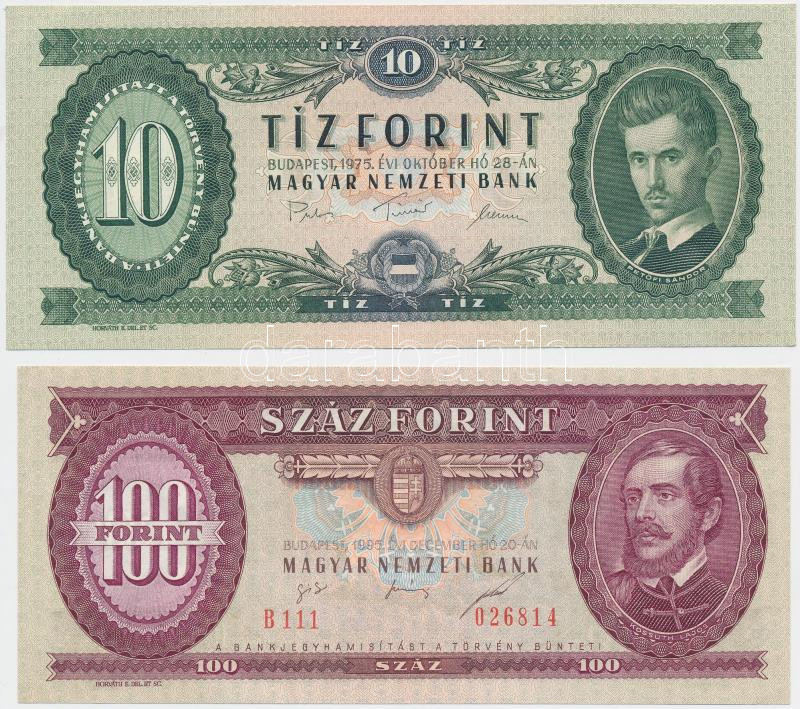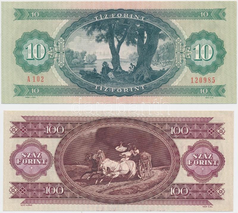 1975. 10Ft + 1995. 100Ft T:I,I- https://www.darabanth.com/hu/227-Gyorsarveres/227.0/Numizmatika/Magyar-bankjegyek~600008/1975-10Ft-plus-1995-100Ft-TI-I-~II1009152