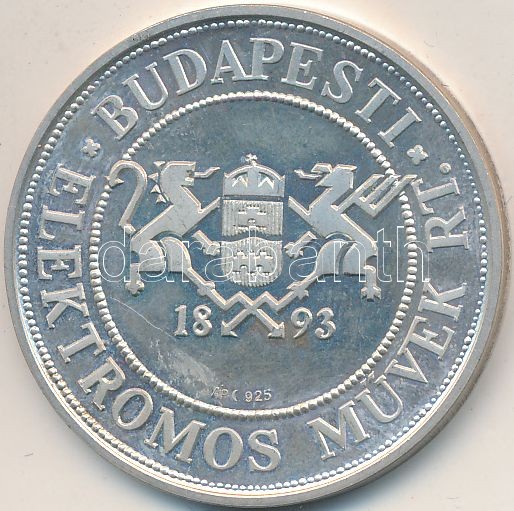 Leírás: Bognár György (1944-) DN "Budapesti Elektromos Művek Rt. 1893 / A jól végzett munka elismeréséül" Ag emlékérem (31,42g/0.925/42,5mm) T:2 (PP)
