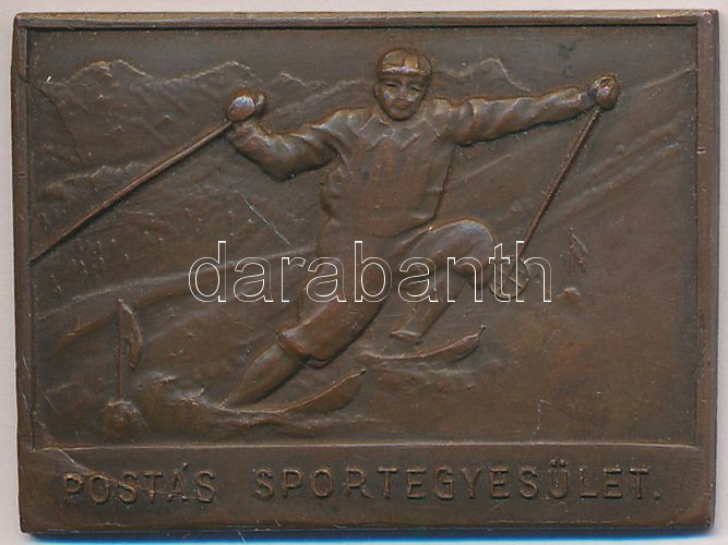Leírás: DN "Postás Sportegyesület" Br sí plakett (54,5x40mm) T:2-