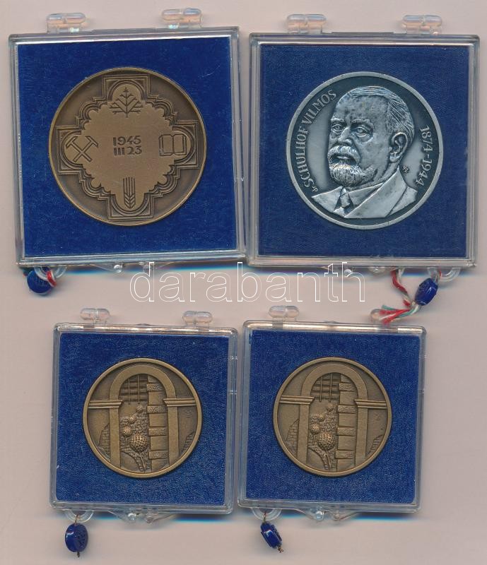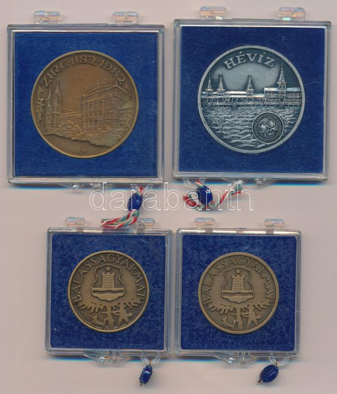 Leírás: Képíró Zoltán (1944-1981) DN "Magyar Éremgyűjtők Csoportja-Keszthely - Hévíz / Schulhof Vilmos" fém emlékérem + Fritz Mihály (1947-) 1982. "Zirc" Br emlékérem (42,5mm) + DN "Balassagyarmat" Br emlékérem (2x) (31mm), mindegyik plombált "ÁPV" tokban T:1