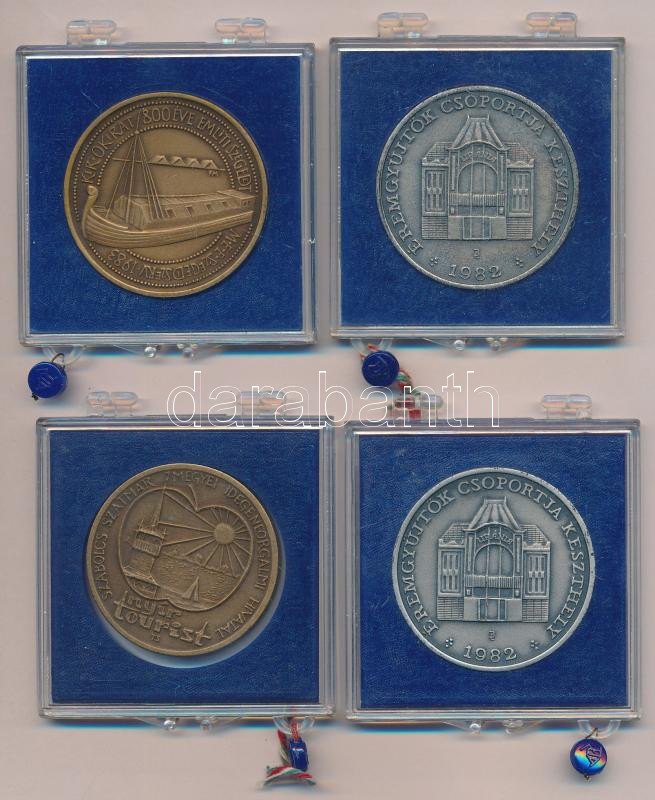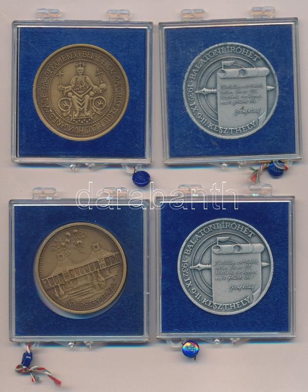 Leírás: Tóth Sándor (1933-) DN "Szabolcs Szatmár Megyei Idegenforgalmi Hivatal" Br emlékérem + Bogár Lívia (1957-) 1982. "Éremgyűjtők Csoportja Keszthely / Balatoni Íróhét" (2x) ezüstpatinázott emlékérem (42,5mm) + Fritz Mihály (1947-) 1983. "MÉE Szeged / 800 éves Szeged" Br emlékérem (42,5mm), mindegyik plombált "ÁPV" plasztiktokban T:1