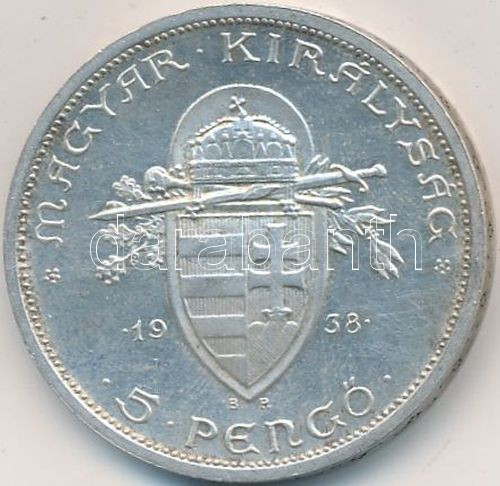 Adamo P8.1 https://www.darabanth.com/hu/227-Gyorsarveres/227.0/Numizmatika/Magyar-fem-es-ezustpenzek~600009/1938-5P-Ag-Szent-Istvan-T2-3Cbr3EAdamo-P81~II1010110