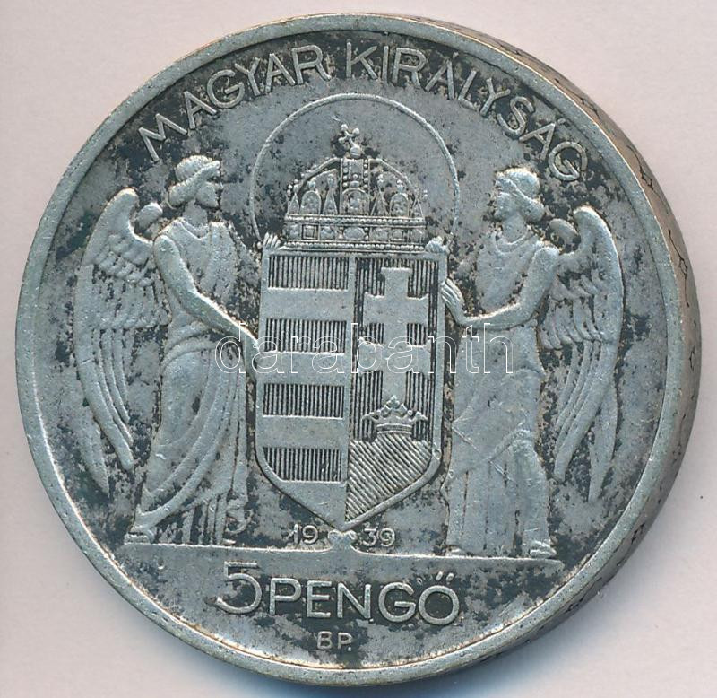 Leírás: 1939. 5P Ag "Horthy balra" T:2-