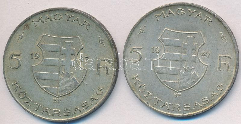 Leírás: 1947. 5Ft Ag "Kossuth" (2x) T:2-,3